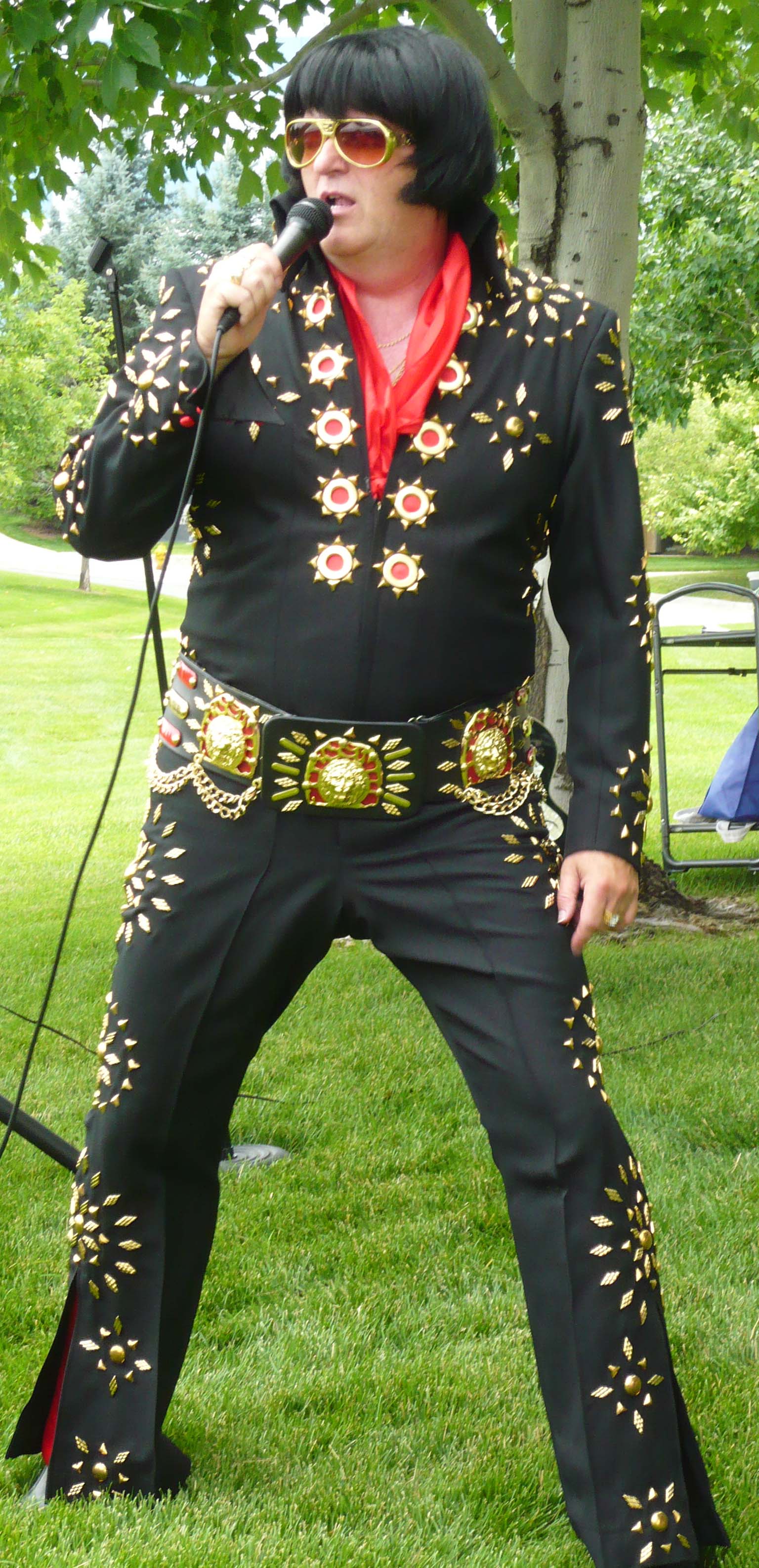 The suits are exact, the moves are exact! How close is the sound? We are always being asked if we are lip-synching, but that REALLY IS Aaron singing!!! Read the Customer Comments again! As a child, Aaron saw the REAL Elvis in Concert six times! We honor those memories with what our clients tell us is the BEST Tribute-to-Elvis in Colorado!