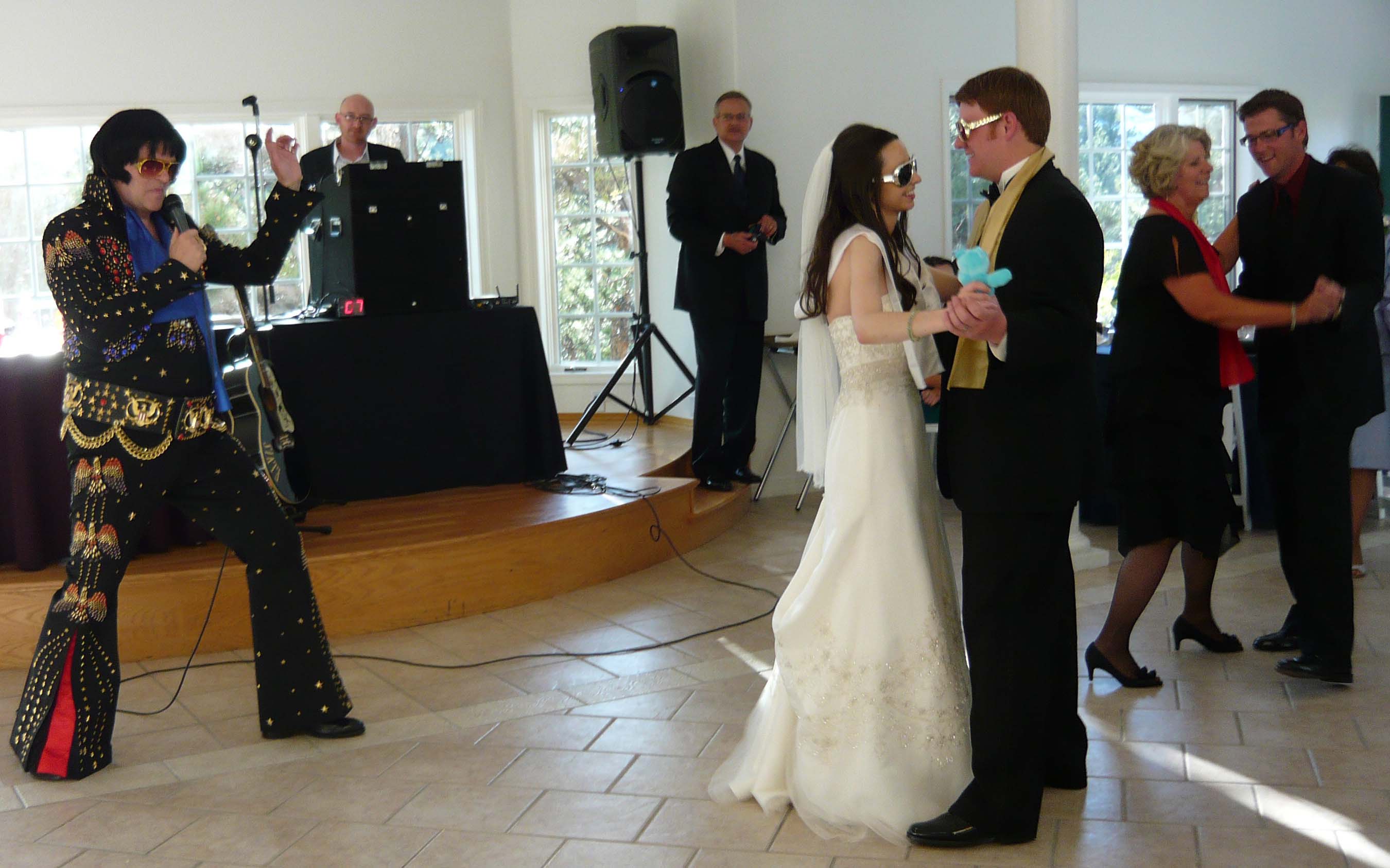 During our Show, we will create a special moment where the new bride and groom do their vows once more, but this time, with Las Vegas-style Elvis Wedding Vows! The receive souvenir sunglasses and scarves too! Then, the King sings while they dance! This is a moment you will remember forever!